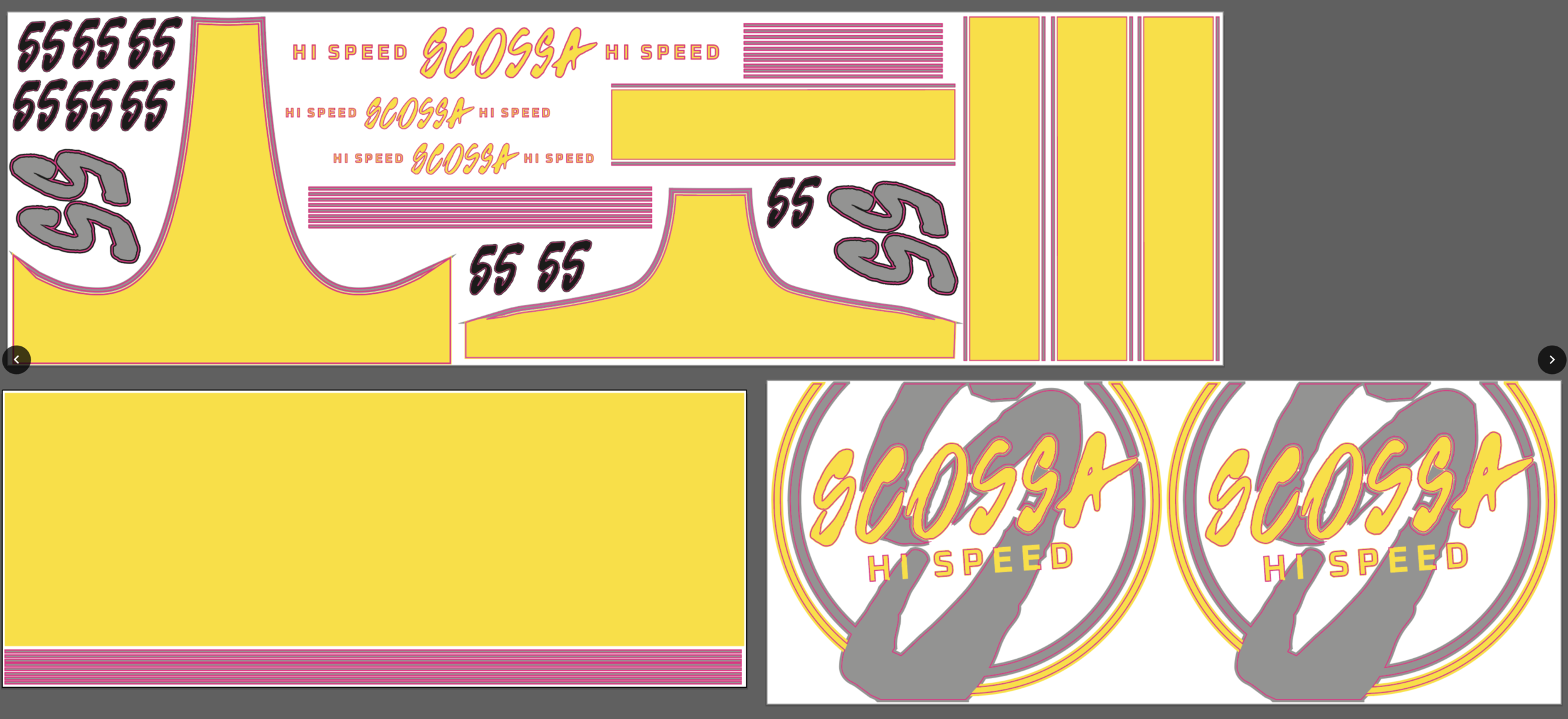 ~ This Ferrari Scossa livery was designed on a flat 2D template in a European scale and completely redesigned and redrawn for production in American measurements at 10-scale. ~